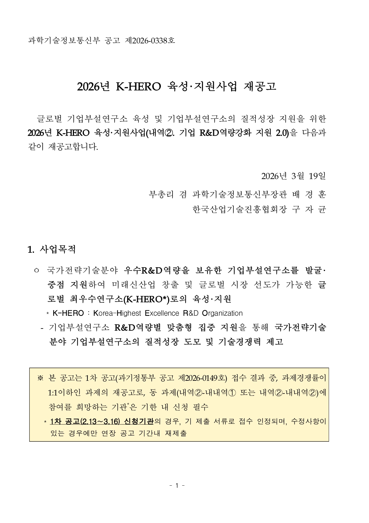 | 2026년 K-HERO 육성·지원사업 재공고 | |||