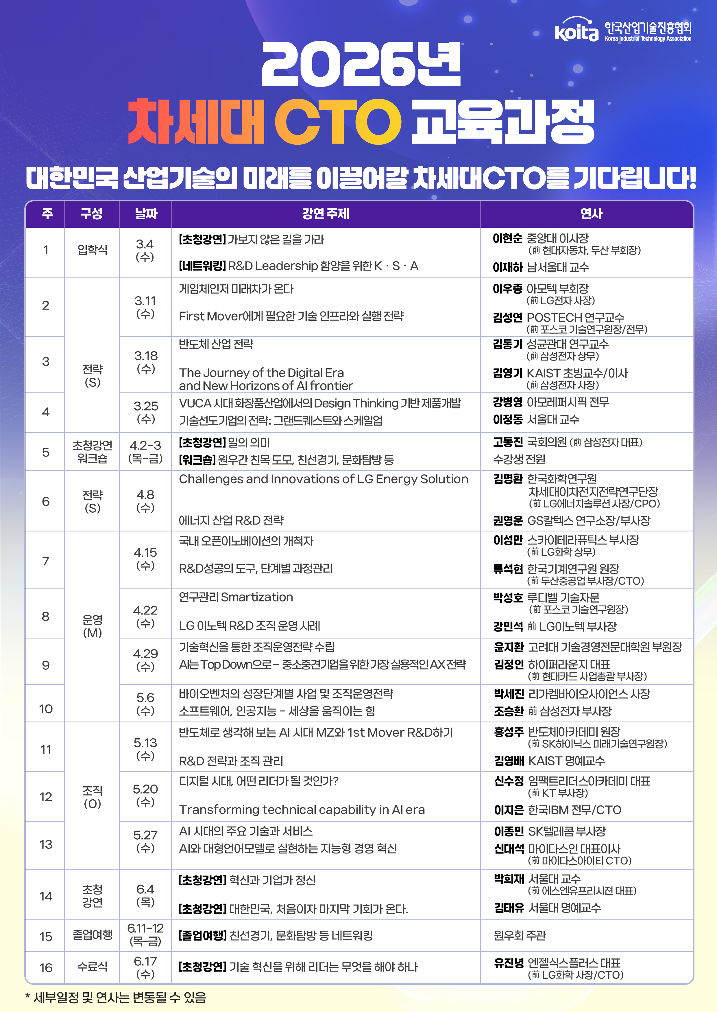 | 2026년 차세대 CTO 교육과정(NexCTO) 5기 참가안내 | |||