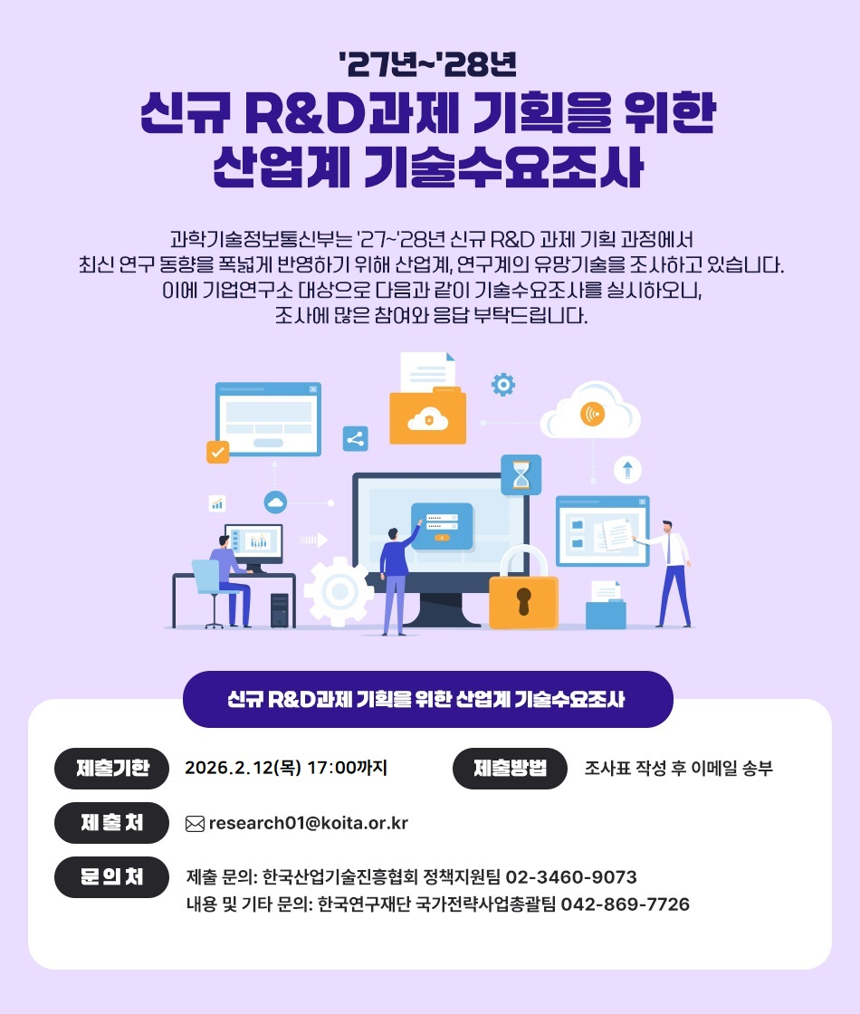 | '27년~'28년 신규 R&D과제 기획을 위한 산업체 88 포춘 슬롯수요조사 안내 | |||