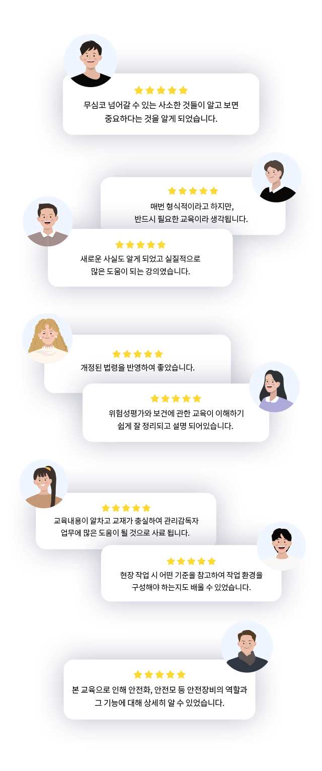 | 관리감독자 | ① 오프라인해외 슬롯사이트 8시간 + 온라인해외 슬롯사이트 8시간(16시간) ② 실시간 비대면 해외 슬롯사이트 8시간 + 온라인해외 슬롯사이트 8시간(16시간) ③ 오프라인해외 슬롯사이트 8시간 or 실시간 비대면 해외 슬롯사이트 8시간 |